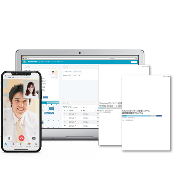 また、Yokumiruは『医師・患者・運用』マニュアルを取り揃えております。 導入開始の準備から実際に診療するまでのサポートが医師・患者様両方で充実しています。